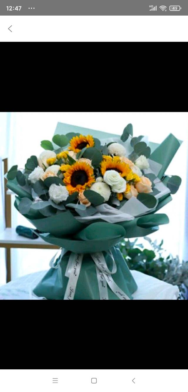 6朵向日葵+桔梗+乒乓菊+尤加利绿色系包装 |