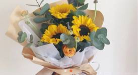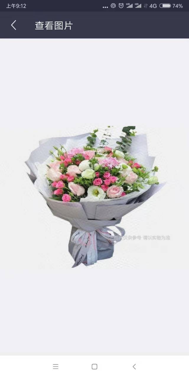 精美花束如图(约11朵粉玫配桔梗及其他配花如图) |