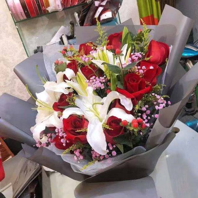 夜上海论坛11朵红玫2朵百合礼盒 |