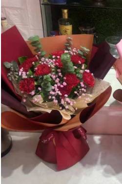 11支粉康乃馨4支红玫瑰花束,如图 |