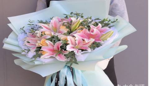 夜上海论坛9支粉百合加3朵红玫瑰花束 款式如图做 |