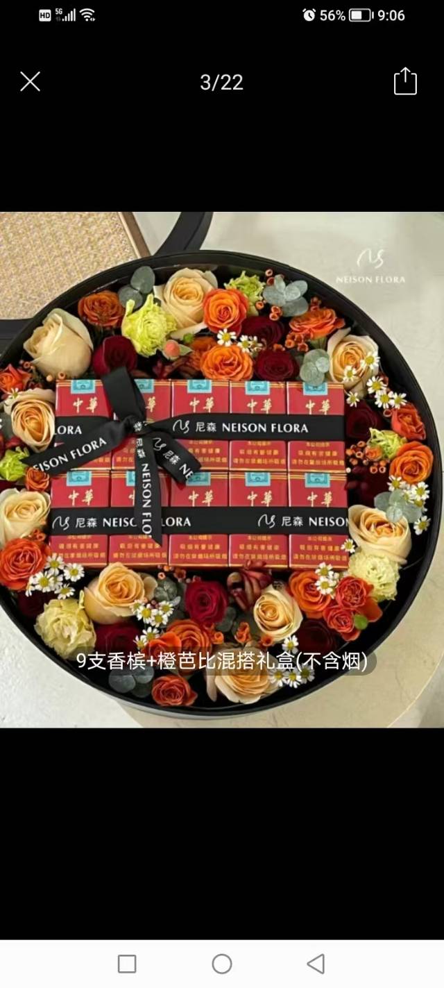 夜上海论坛一条南京梦香烟红玫瑰礼盒+8颗巧克力(鲜花以红玫瑰为主) |