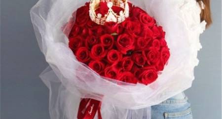 33朵粉玫(戴安娜)加皇冠加配叶花束,如图包装大气好看 ,有卡片,客人到店取。 |