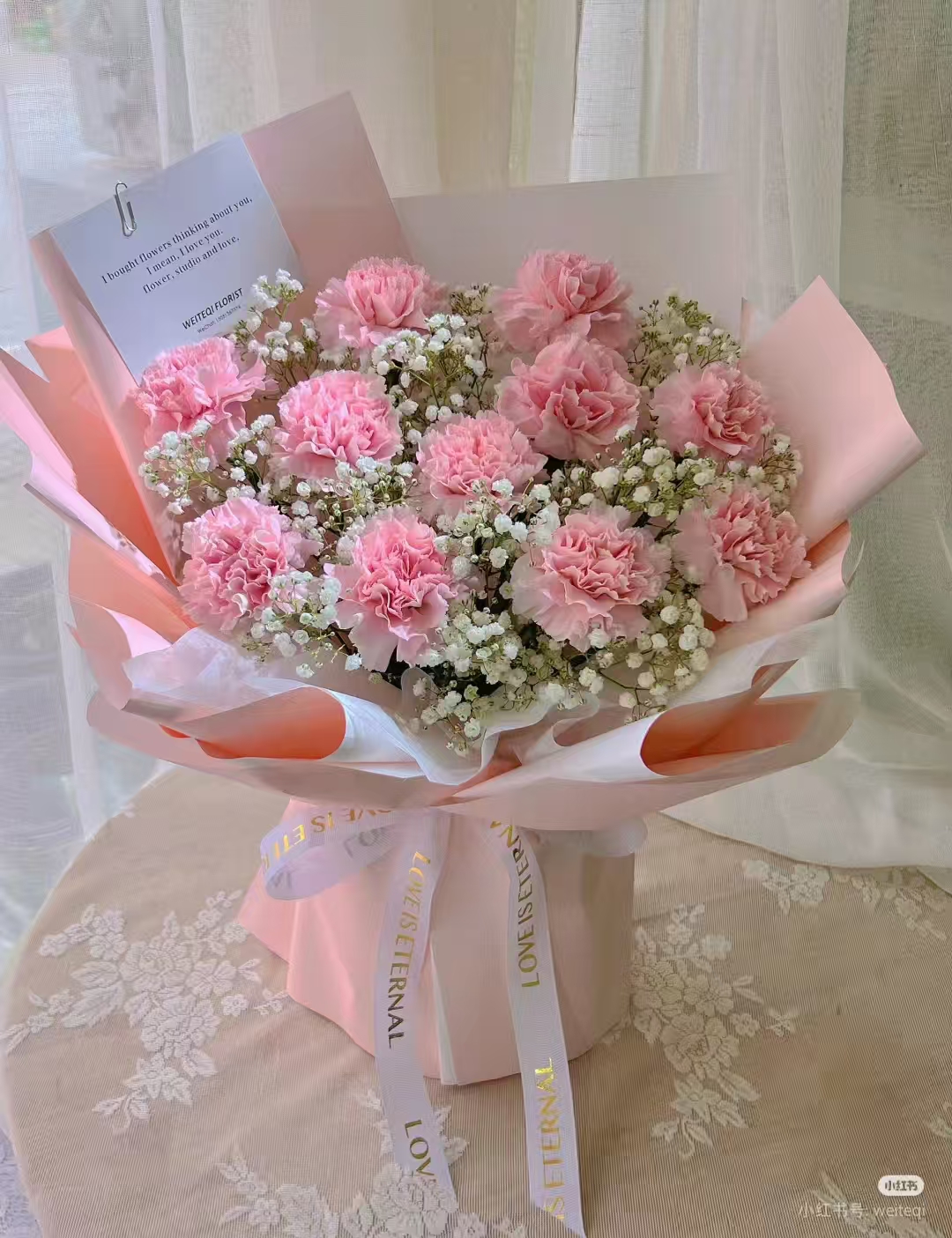 夜上海论坛11支粉康乃馨2支多头白百合花束,如图 |