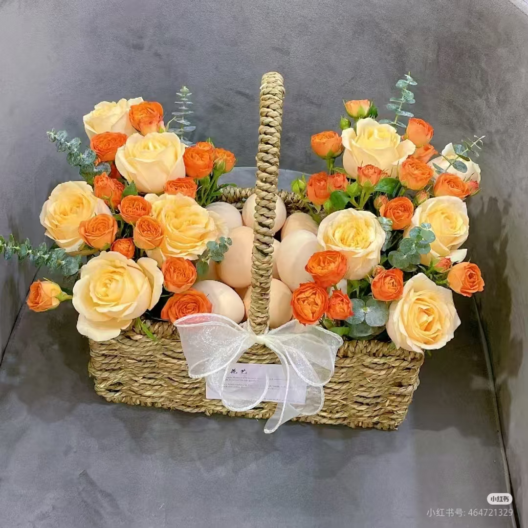夜上海论坛11支香槟玫瑰,5支向日葵,5支双头白百合再配白色洋桔梗,绿叶混搭花束,款式如图 |