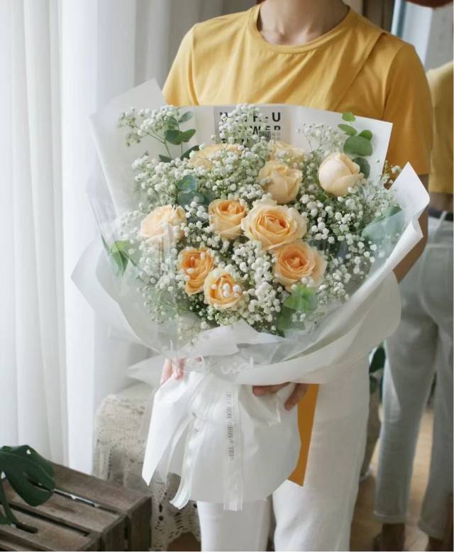 夜上海论坛11支香槟玫瑰配满天星花束,如图 |