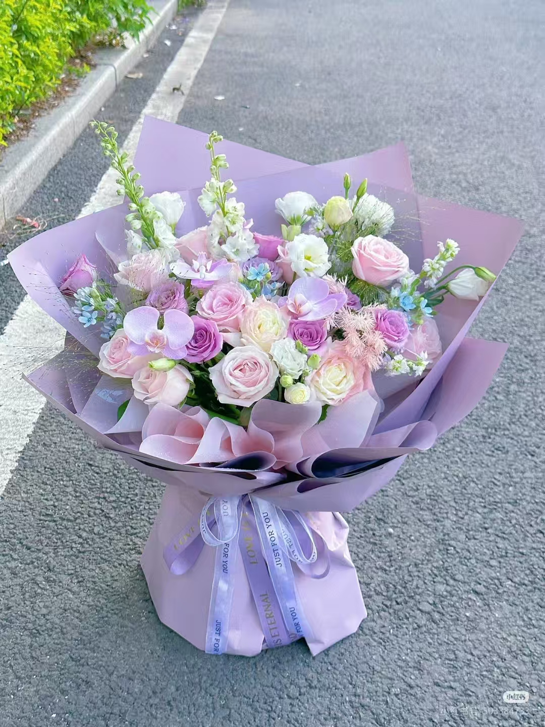 夜上海论坛9支白玫+粉玫混搭花束,如图 |