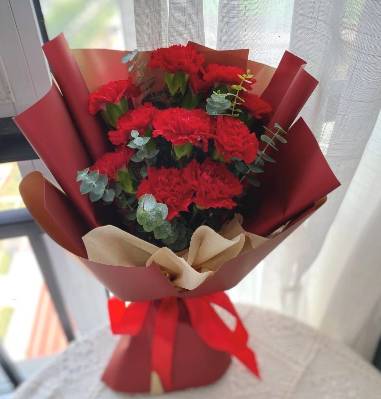 11朵粉玫瑰 10朵粉康乃馨 3朵向日葵花束 如图 |