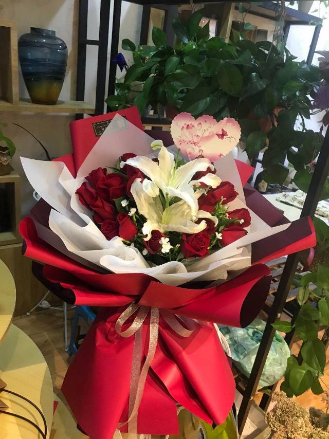 夜上海论坛19枝红玫瑰2朵白百合花束 如图包装 |