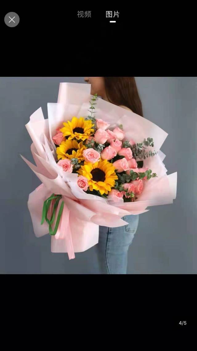 19朵粉玫瑰3朵向日葵花束,如图包 |