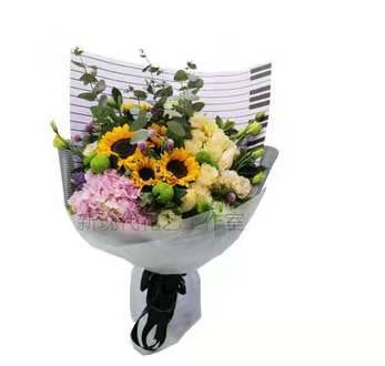 11支香槟1支粉绣球3支向日葵花束,如图搭配好看,有卡片,26号(周六)下午5点送到。谢谢! |