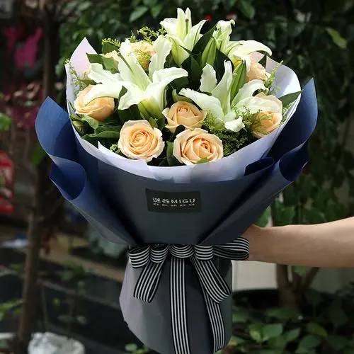 夜上海论坛11朵香槟1支多头白百合花束,如图包