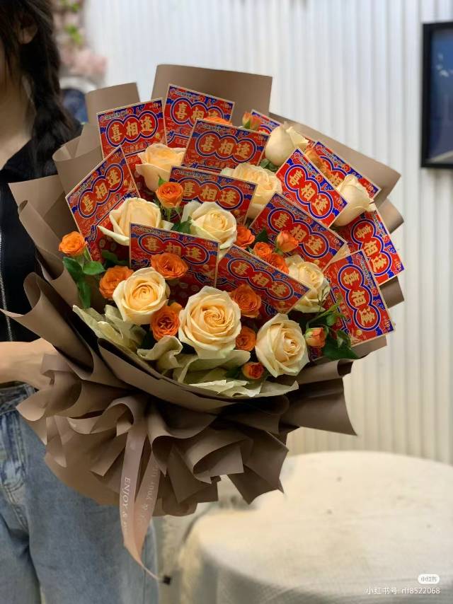 11支香槟玫瑰配橙泡泡+13张彩票(30面值的)按图包 |