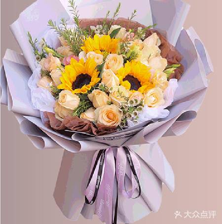 21朵香槟3朵向日葵混搭花束,如图包 |