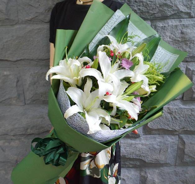 夜上海论坛13朵白色百合花束,花材新鲜,包装大气,如图 |