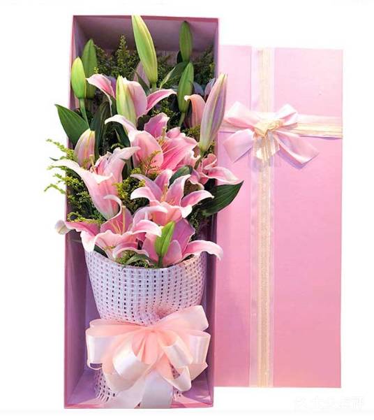 夜上海论坛19朵粉色百合礼盒装,如图 |