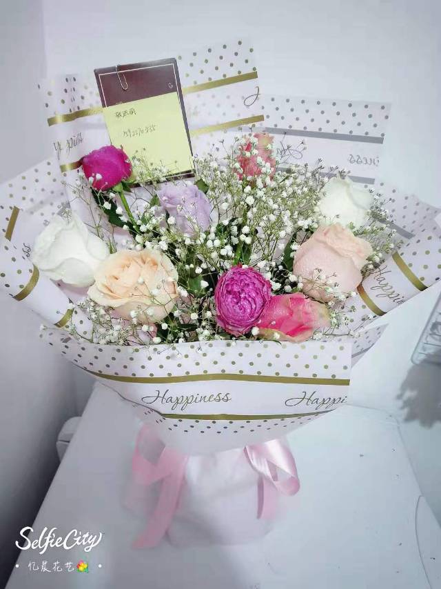 11朵粉玫瑰13朵粉百合花束 (客人同意换成白色百合) 如图 |