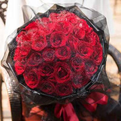 33支精品红玫瑰带纱款鲜花束,如图包 |