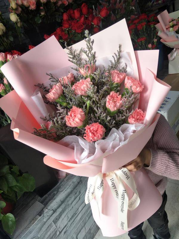 夜上海论坛11朵粉色康乃馨花束,如图制作 |