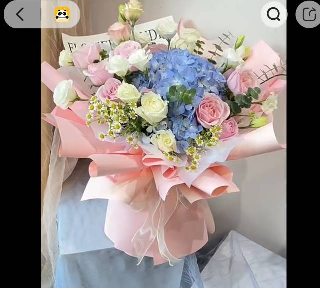 11朵粉玫加9支桔梗加2朵绣球。如图包。 |