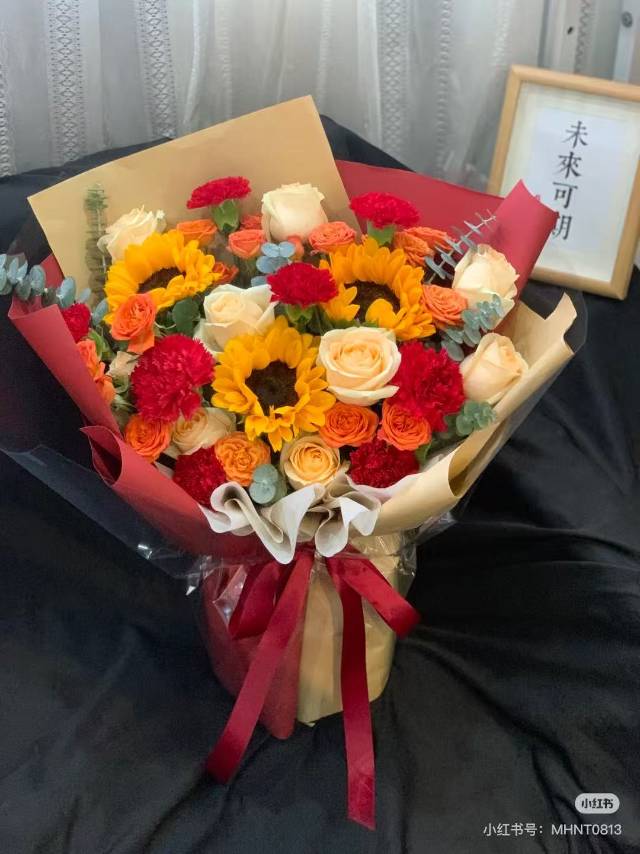 3支向日葵 红康乃馨香槟混搭花束,按图搭配 |