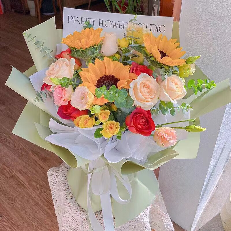 19朵香槟 6朵向日葵 按图包装款式做 |