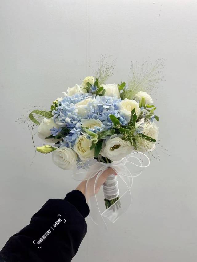 夜上海论坛蓝绣球 白玫瑰 白桔梗混搭手捧花 如图包装 |