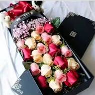 19朵红玫瑰香槟玫瑰粉玫瑰混搭礼盒+两个小熊 |