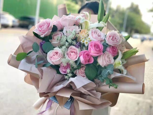 夜上海论坛19混搭玫瑰6朵百合花束 |