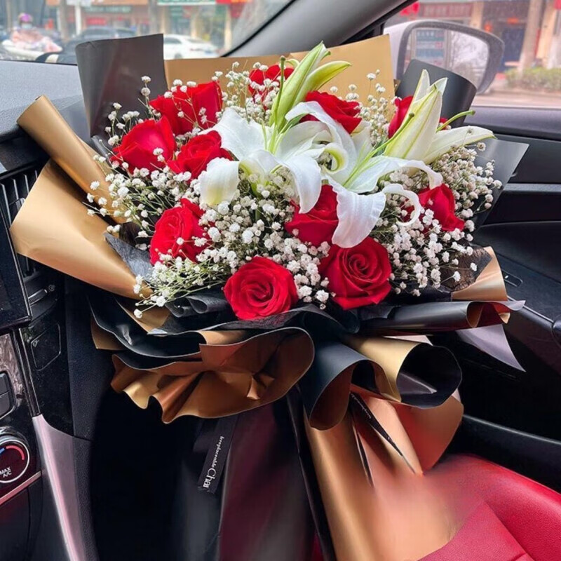 夜上海论坛19支戴安娜玫瑰配白桔梗花束,如图 |
