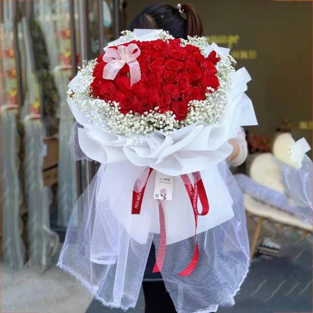 33支精品红玫瑰花束。另加一支单支粉玫 |