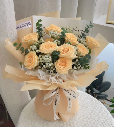 夜上海论坛11支粉康乃馨1支向日葵配满天星花束,如图 |