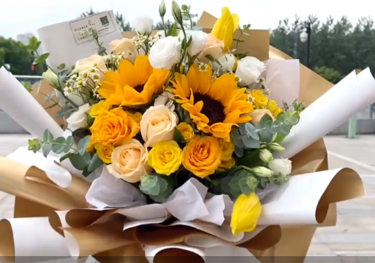11朵粉玫瑰2向日葵满天星混搭花束 如图 |