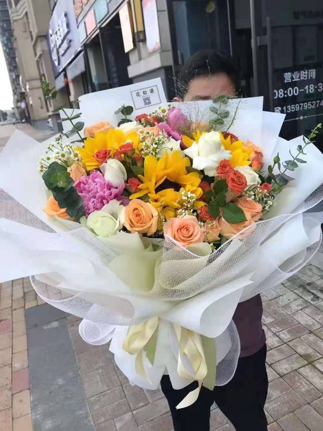 夜上海论坛香槟玫瑰向日葵混搭花束(粉色的包装纸里面配硬纱)款式如图 |