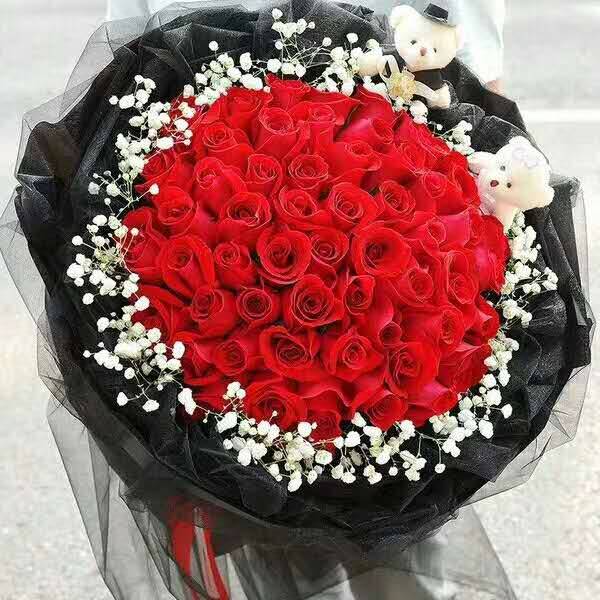 52朵红玫瑰花束,如图制作 送2小熊 |