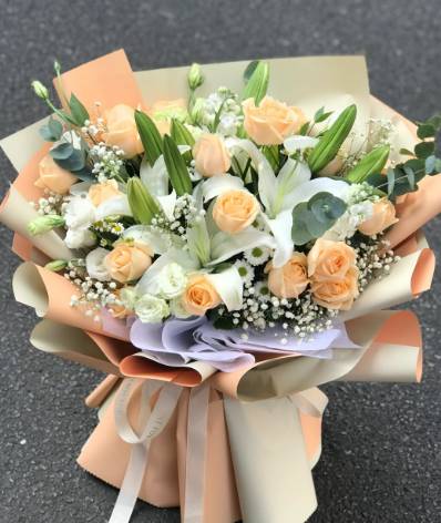 夜上海论坛香槟19朵白百合混搭花束 按图包装 |