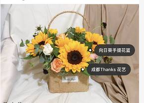 向日葵玫瑰手提篮 ,如图,有卡片 ,按时送达。
