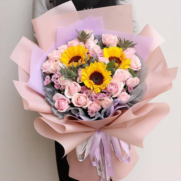19支代安娜粉加3朵向日鲜花束,如图包 |