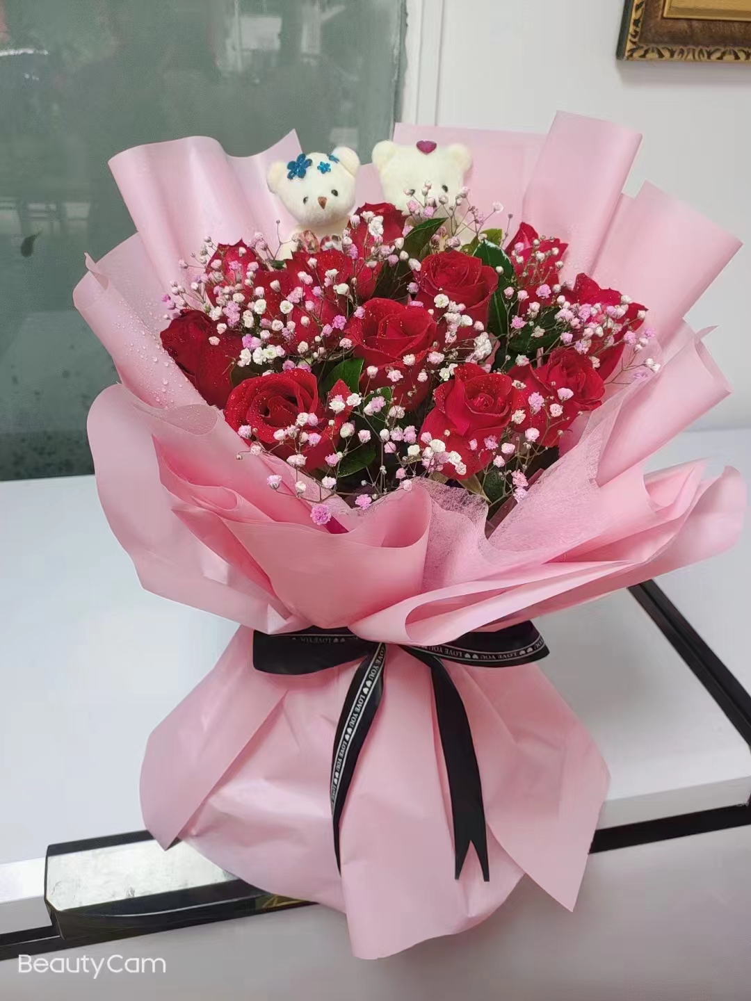 夜上海论坛6朵粉玫瑰满天星混搭花束.,按图包 |