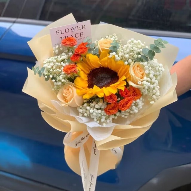 夜上海论坛1支向日葵配3朵香槟玫瑰花束 |