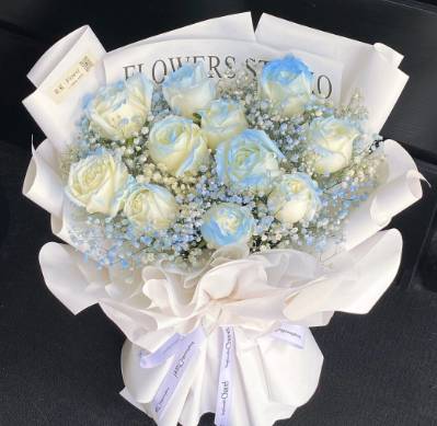 夜上海论坛19朵香槟玫瑰加满天星尤加利如图 |