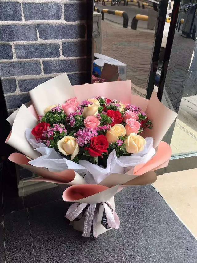 夜上海论坛33支红 粉 香槟色玫瑰混搭花束,如图