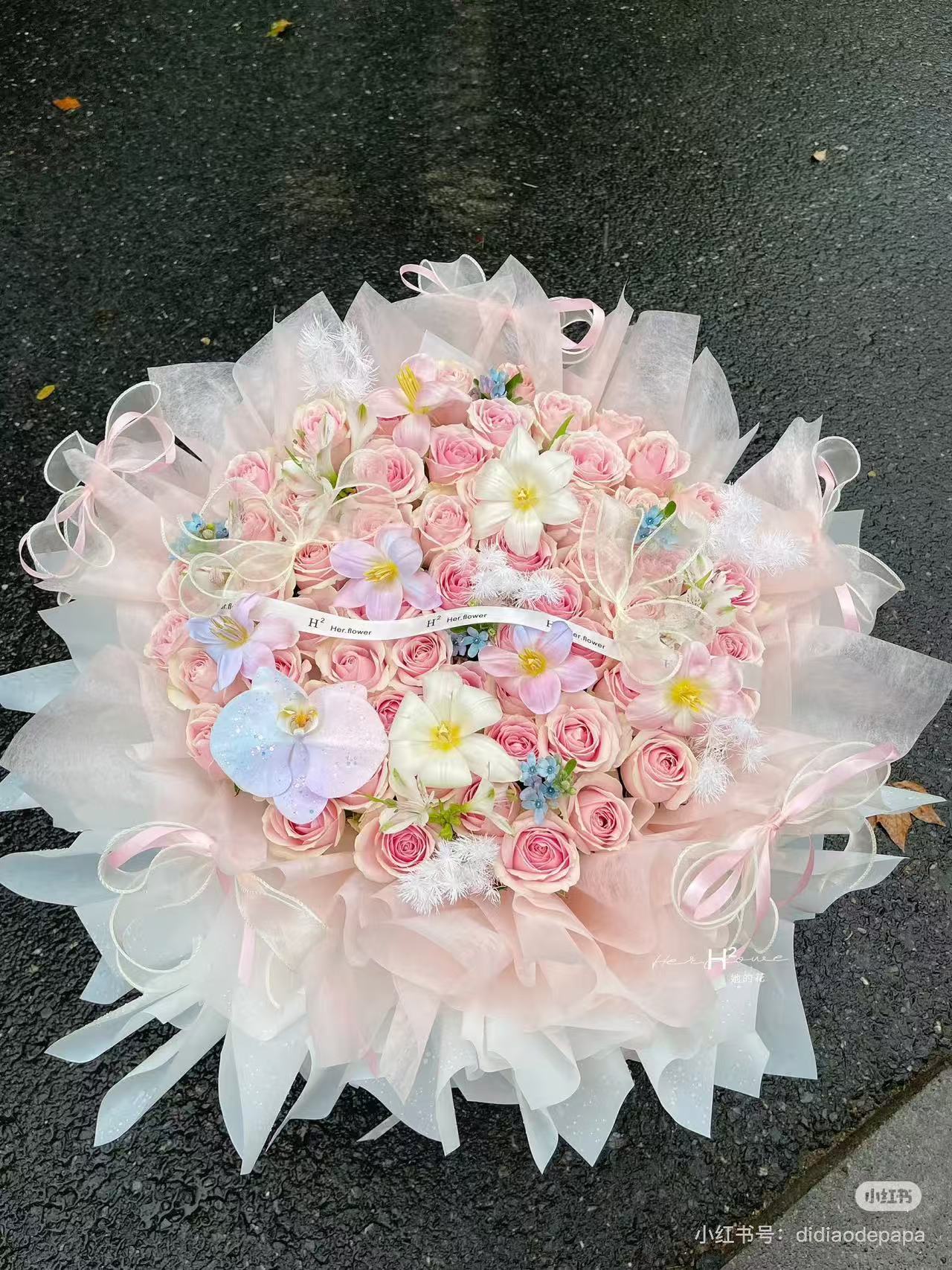 夜上海论坛6支向日葵配洋桔梗满天星花束,如图