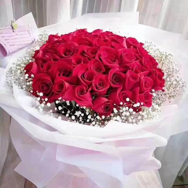 夜上海论坛52朵红玫瑰花束白纱包装(图里是33朵的,按这个款式用52朵来做)