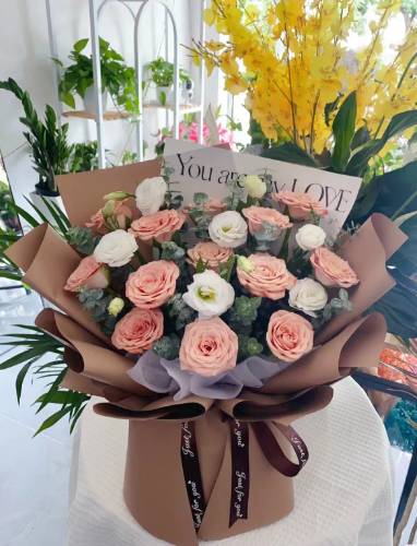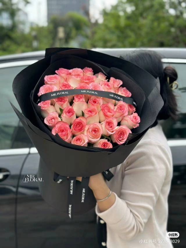 夜上海论坛33支爱莎玫瑰花束 款式如图(包装纸换成粉色的) |