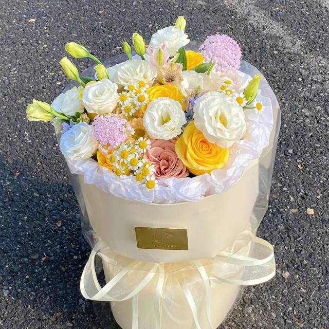 夜上海论坛5枝黄玫瑰花1枝卡布洋桔梗混搭花束 |
