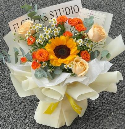向日葵 3支香槟玫瑰橙芭比 混搭花束,如图 |