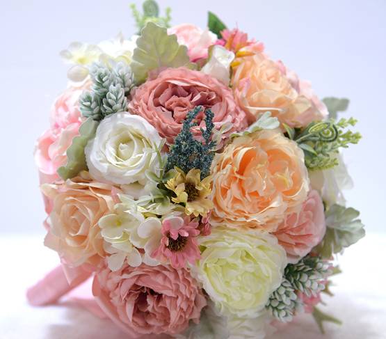 17朵香槟粉玫瑰混搭新娘手捧花,如图 |
