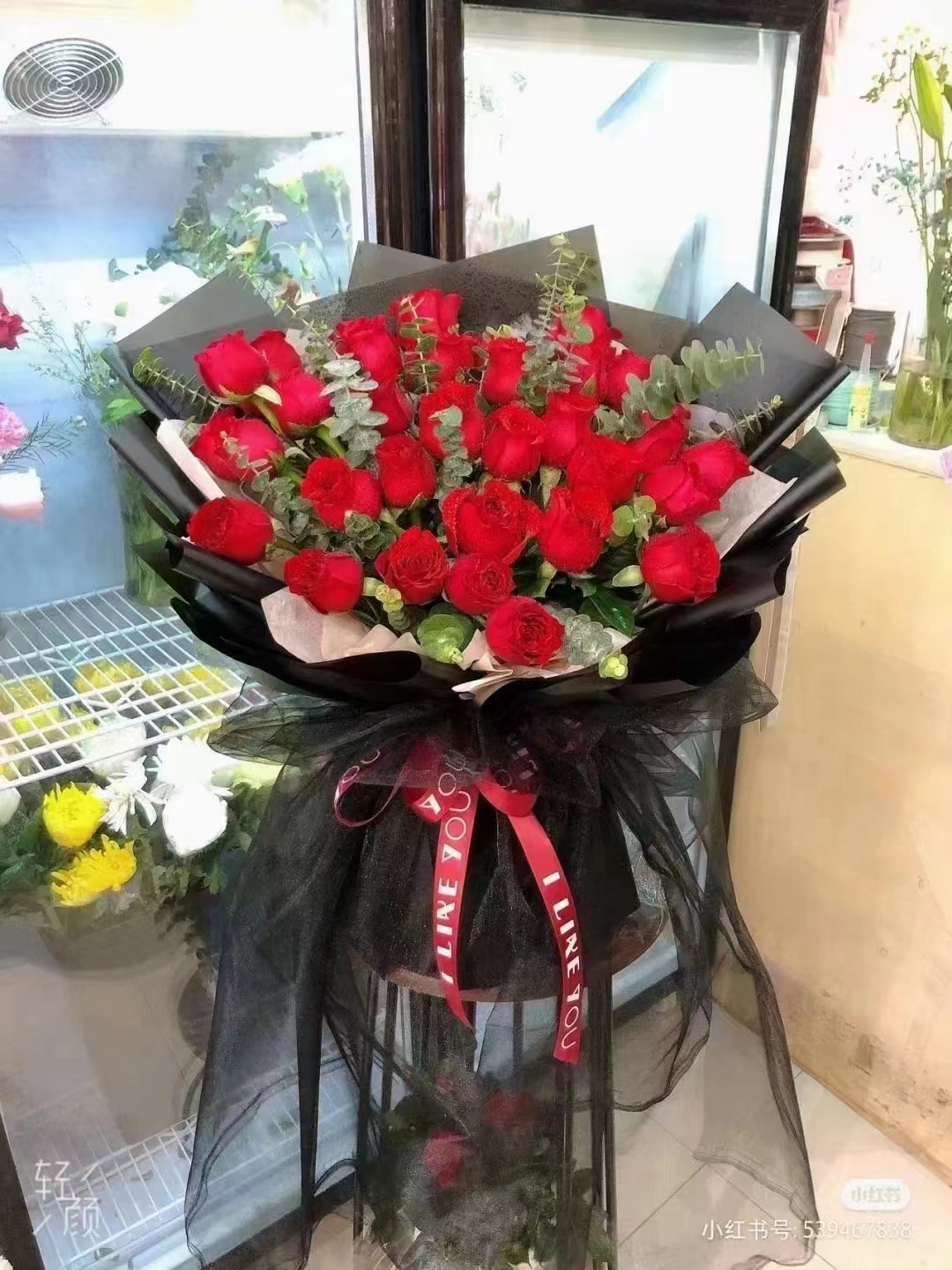 烟客户自己带,11支红玫加满天星花束 按图 |