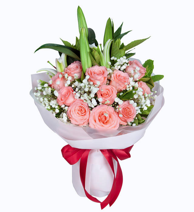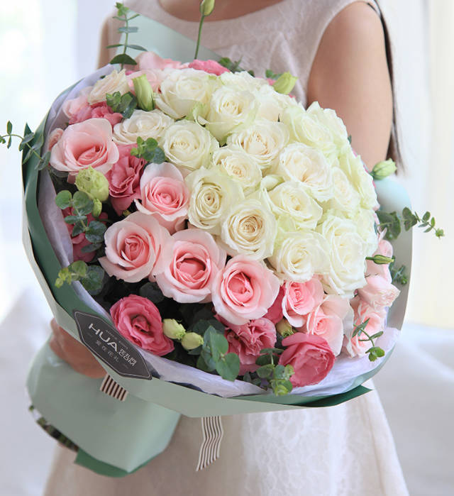 甜美公主.白玫瑰22支.粉玫瑰粉佳人14支.粉色桔梗5支